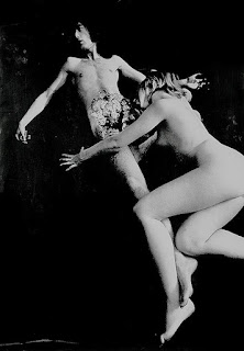 I had an assistant go down to the butcher and get these entrails, and they smelled like crazy! So I insisted they be kept in a can out on the back porch of my studio for the early morning shooting, and we weren’t going to bring them in until we had to because of the smell. Page came in with this model, some groupie that was hanging on to him at the moment. I don’t remember her name, it was ‘Moonbeam’ or something… And I had the private set ready so there was no one there but him and me and this model. They stripped down and I got them all posed and everything and I said ‘ok, I am going to bring in the…uh..entrails,’ and by now the sun had come up and and it was heating them up so they were warm, I put them on him and got it all posed, but I’m looking through the camera and I’m thinking, ‘it just looks like I poured those entrails on his stomach, it doesn’t look like there’s a gash or anything.’ It just didn’t look convincing. And he’s laying there and she’s laying there and the stuff is beginning to get ripe and I’m thinking, ‘I’ve gotta think quick.’ So I run out to the kitchen and look in the refridgerator and there was my answer. I had a nice jar of strawberry preserves! I quick grabbed a long spoon and mixed ‘em up and they had the right redness and consistency, with little specks and everything. It had the right look to it like it might be the inside of a turned-out open wound. So I took these cold, cold preserves -and I give Jimmy a lot of credit, he must really have wanted the picture- and put them all around the entrails on his stomach. And I know from the expression on his face and the contortions that his body was going through that this was not a comfortable situation!